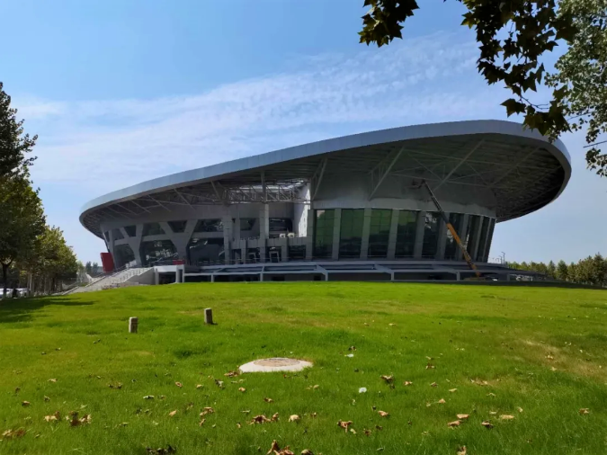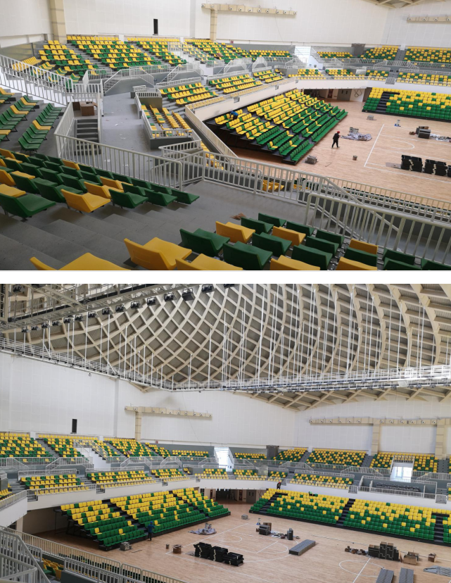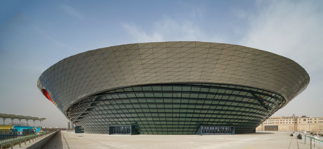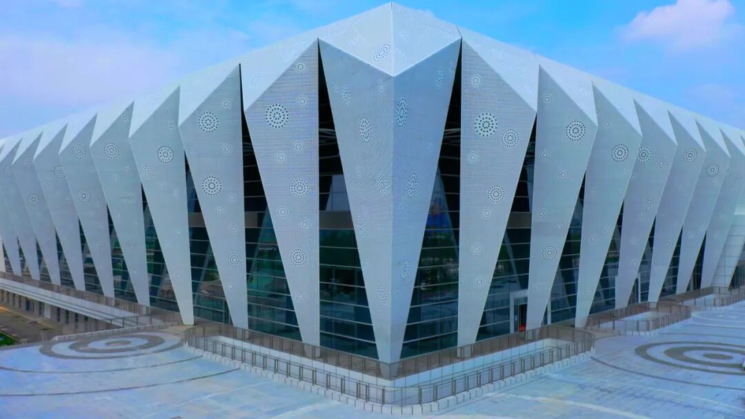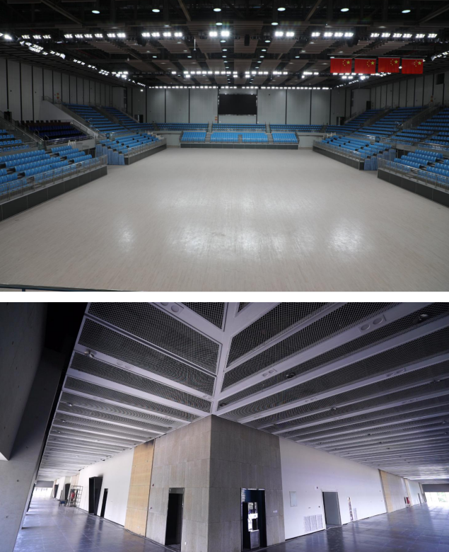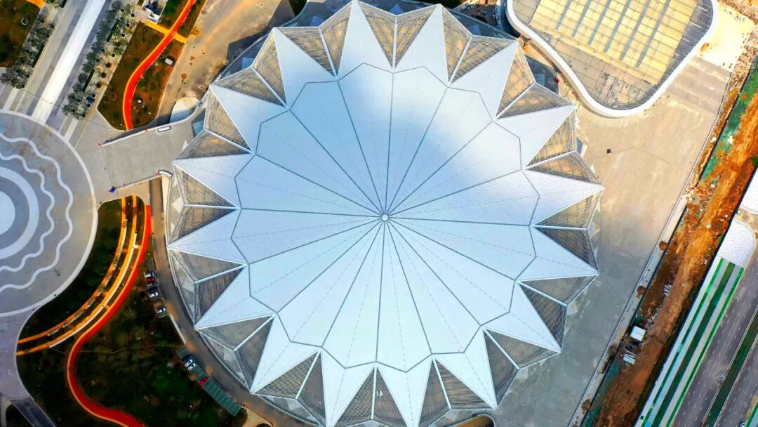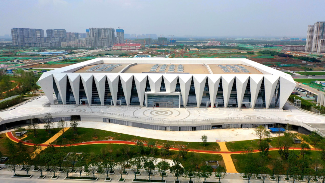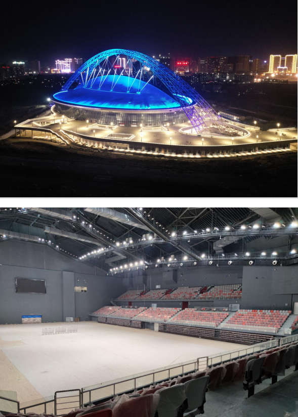2、西安奥体中心体育馆:新建甲级大型体育馆,建筑面积10.83万平方米,座位数18000座,该项目造型硬朗,致敬古长安的高台殿堂,与主体育场的端庄优雅形成动静之趣,刚柔并济。承担十四运会闭幕式、体操比赛项目。