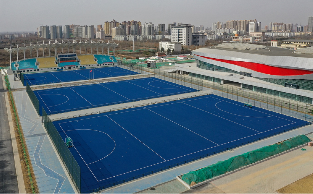 18-21、西安体育学院曲、棒、垒、橄榄球四场地:位于西安体育学院鄠邑校区内。由曲棍球、棒球、垒球、橄榄球比赛场地、看台、赛事服务附属设施用房及其室外设施组成。其中比赛场地10块,看台及赛事服务附属设施用房建筑面积21921㎡。曲棍球赛场总座位数3096个,地上两层,总高15.95m;棒球主赛场总座位数3123个,地上两层,总高11.45m,副赛场总座位数1159个,地上一层,总高6.65m;垒球赛场总座位数2921个,地上两层,总高11.45m;橄榄球主赛场总座位数5088个,地上两层,总高18.35m。承担十四运会曲棍球、棒球、垒球、橄榄球比赛项目。