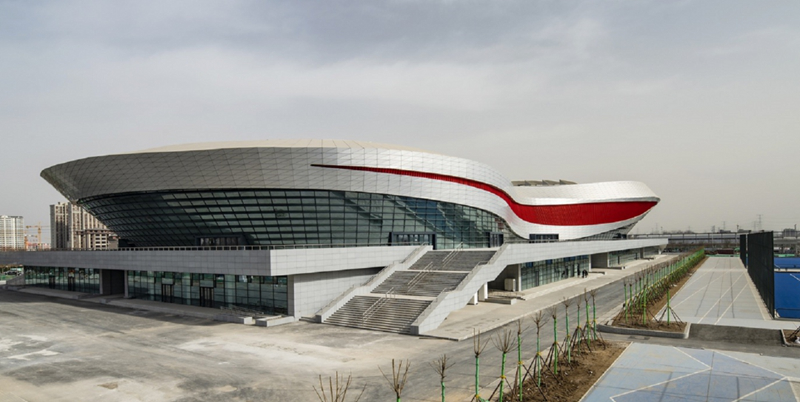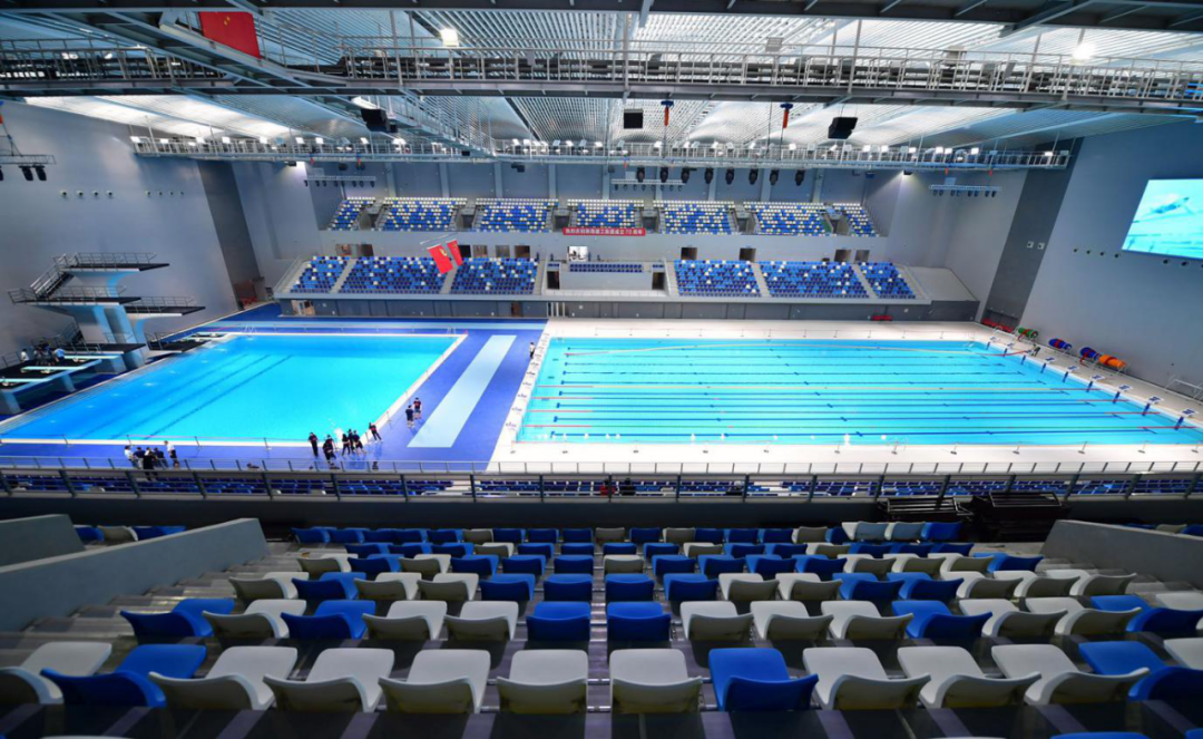 3、西安奥体中心游泳跳水馆:新建甲级大型体育馆,建筑面积10.28万平方米,座位数4046座,以“鼎”作为建筑形体的本源,该项目通过菱形柱廊与玻璃幕墙的虚实结合,蕴含鼎盛中华的寓意。承担十四运会游泳、跳水、花样游泳比赛项目。