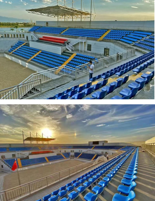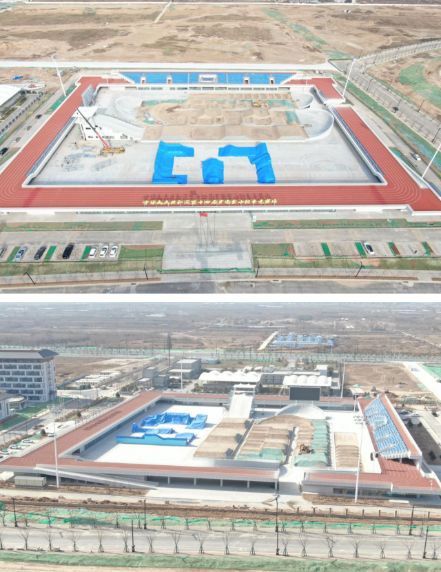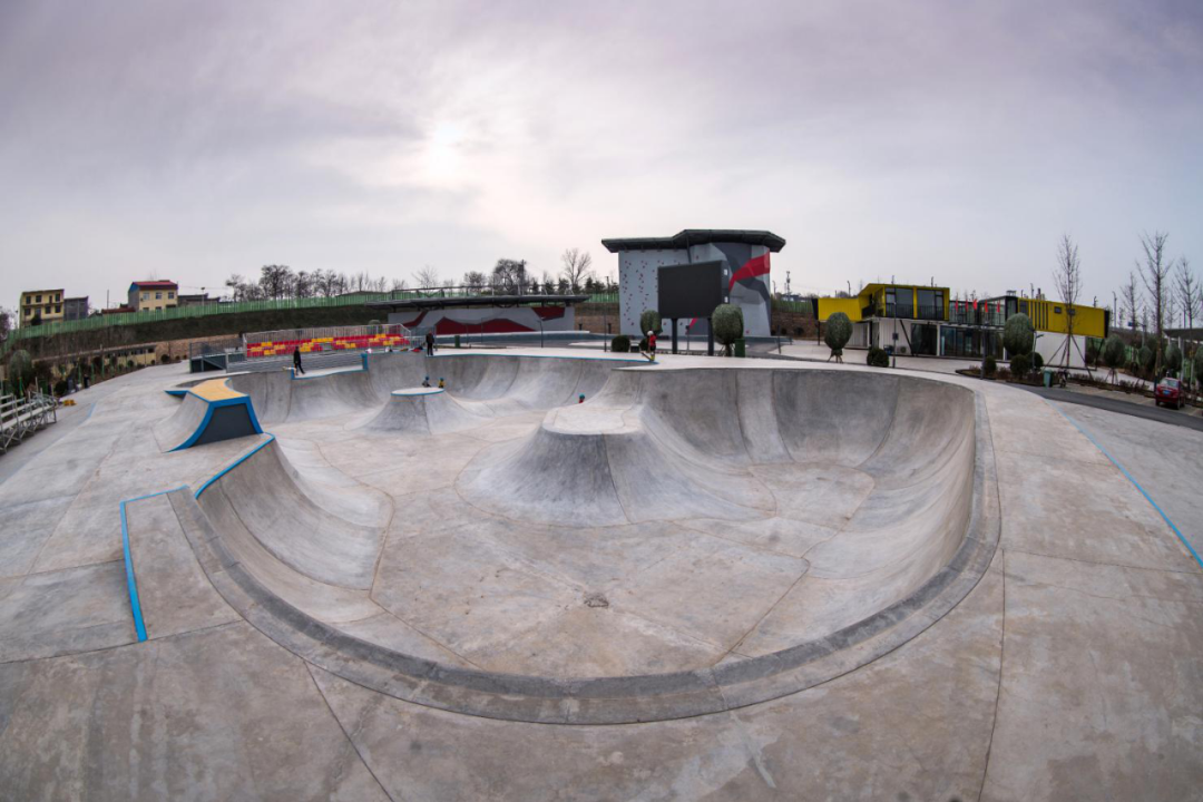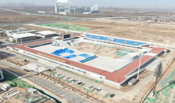 9、阎良区户外运动滑板场地:位于西安市阎良区石川河南岸阎良石川河极限运动中心内,室外场地,总建筑面积约4325㎡,包括滑板碗池约1350㎡,滑板街式约1375㎡,与攀岩场地共用1500㎡集装箱配套用房,共用观众座位数约为1000座。承担十四运会滑板比赛项目。