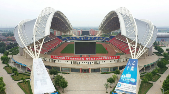 31、咸阳奥体中心体育场:位于北塬一路以北、南湖以西、平福大道东侧。甲级体育场,占地面积318亩、建筑面积71646㎡、室内场地面积1157㎡、室外场地面积56000㎡,座位数38071个。承担十四运会足球比赛项目。