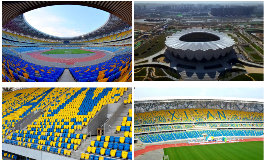 1、西安奥体中心体育场:新建甲级特大型体育场,建筑面积15.65万平方米,座位数60033座,该项目以“丝路启航,盛世之花”为主题,建筑形态取意于石榴花,通过有韵律的变化,寓意丝绸之路。承担十四运会开幕式、田径比赛项目。