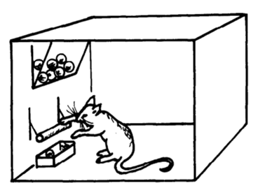 心理学中有一个非常著名的实验——“斯金纳箱实验”就对上瘾行为心理进行了研究。实验者将一只被禁食24小时的老鼠关到一个箱子里,箱子一边有个可供按压的杠杆,每次老鼠按到杠杆就能够获得食物,所以小鼠想要觅食时,就会不断地去按压杠杆。