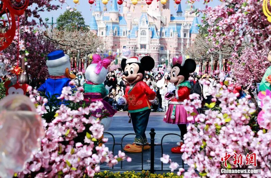 ●2月2日,随着中国农历新春的临近,上海迪士尼乐园内的“年味”也越来越浓。米奇和他的伙伴们身穿节日盛装为游客送上温暖的新春祝福。华美的新春主题装饰融合了标志性的中国元素和独具迪士尼神奇的奇思妙想,让各年龄段的游客都能在这里感受新年的欢乐和喜庆。(来源:中新网)
