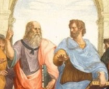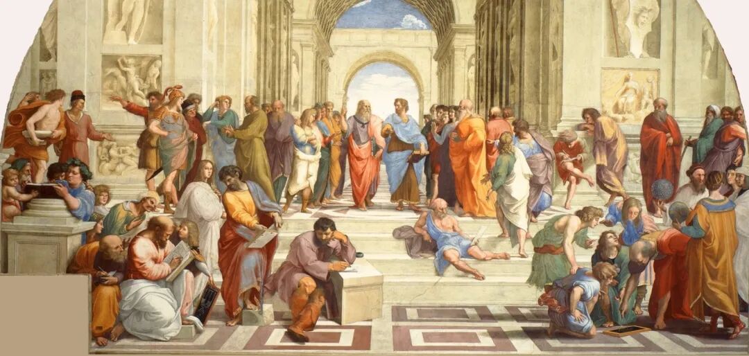 我们回过头来再去看《雅典学院》会发现什么?柏拉图和亚里士多德他们的学术观点不一样,一个手向上指,一个手向下指,也是在代表着他们学术观点之间的差别。