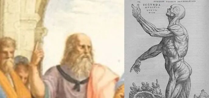 带着这样的疑问,我们走向了下一个景点,就在它的隔壁的签字厅。这里面有拉菲尔所画的《雅典学院》。这个画跟医学关系特别密切。因为《雅典学院》中间画了两个人——柏拉图和亚里士多德。柏拉图手里抱了一本书叫《蒂迈欧篇》,里面记载了很多古希腊的医学知识,尤其是我们所熟悉的希波克拉底。他的很多观点都被柏拉图写在了《蒂迈欧篇》里。