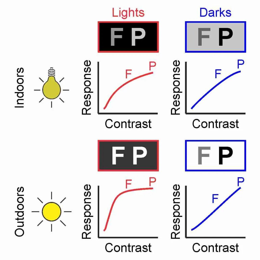 数十年来,视觉研究一直基于亮度对比度(luminance contrast,刺激物与周围环境的光强差异)不会随光强改变的假设,例如在室内或户外等不同光照情况下看书时,白纸和黑字的对比度不变,但一项《细胞报告》上的新研究推翻了这一假设。研究人员发现,光强会影响大脑视皮质对明暗刺激物的对比敏感度。随着光强增加,眼睛会更容易辨认环境中更暗的刺激物,而更不容易辨认明亮的刺激物。这项研究将有助于改善视觉测试,以及纠正一些和视觉测试相关的研究。