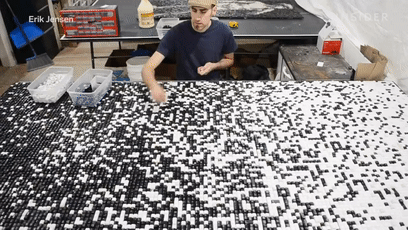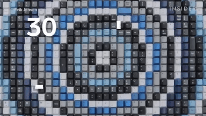 这些键盘画的制作流程分四步:拆键盘、洗键帽、染键盘、拼图画。平时毫不起眼的小方块,在Erik的手中经过一番排列组合后,化身世界名作。