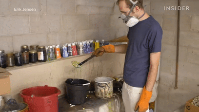 因为键盘没有五颜六色的外壳,所有键盘都要自己染色。为了突出键盘画的特点,需要保证颜色饱和度,又不能覆盖表层的字母,Erik经过反复实验,自创了一套染色配方。