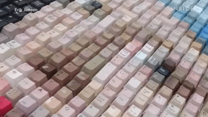 只不过这位拆键盘的网友,并不是为了治愈解压,而是要收集这些键盘帽用来