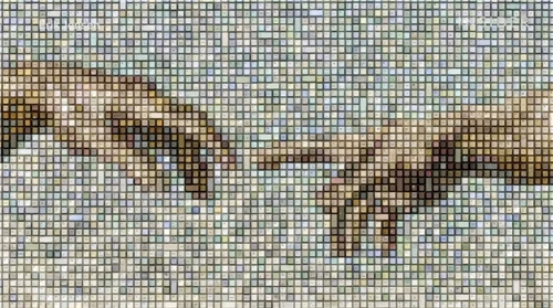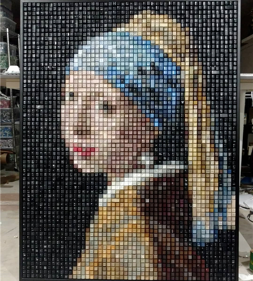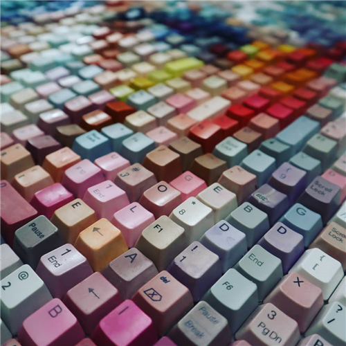 而键盘画中的每一个键盘帽都是完整的方形,没有经过造型切割。所以,在有限的画布尺寸中,如何用方格拼出油画中少女圆溜溜的大眼睛呢?