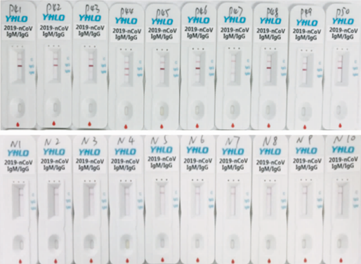 抗体检测的红线。上一行为阳性,下一行为阴性。