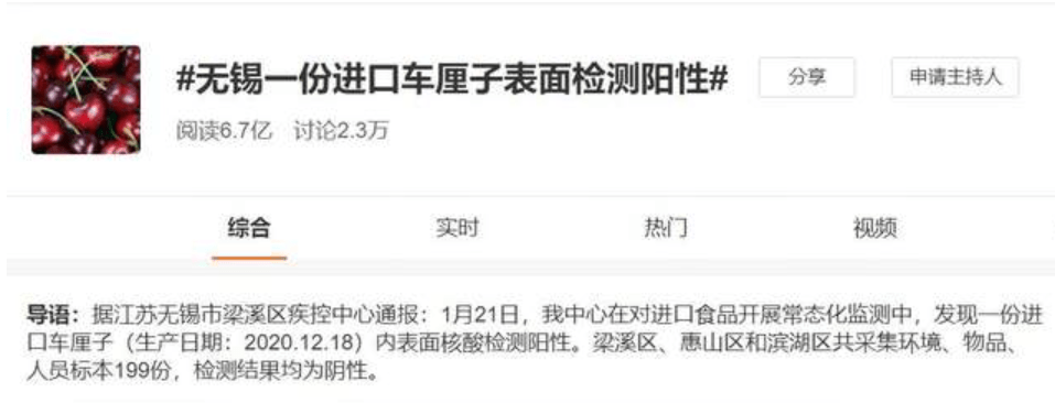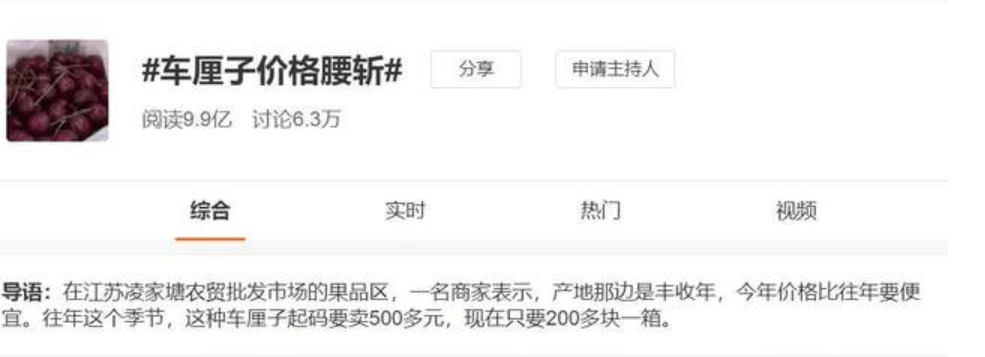 但是好景不长,就在人们因为终于可以尽情吃车厘子而欢呼雀跃的时候,微博上蹦出来了一个热搜,让大家手里的车厘子瞬间就不香了: