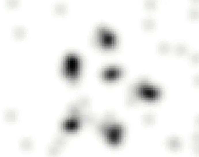 六个铁离子的图像,它们被限制在二维谐振子阱中 图片来源:Selim Jochim Group, University Heidelberg