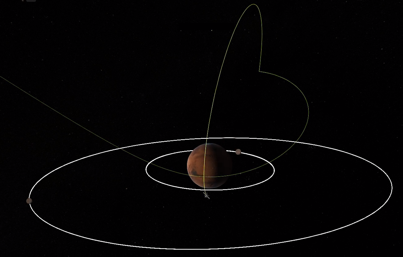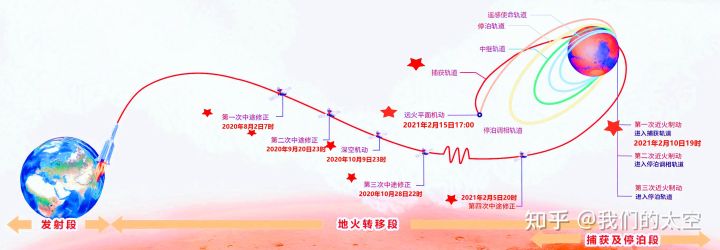 后续,探测器还将通过数次轨道调整,进入火星停泊轨道。