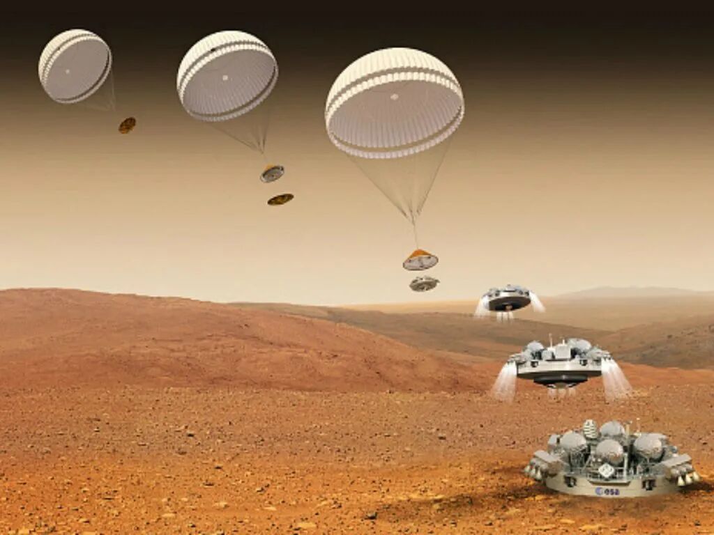 在下降段进入火星大气层约240秒后,离火星地表约11公里的高度时,超音速降落伞将被打开,将毅力号的速度从1512公里/小时,降低到320公里/小时,降落伞打开后的20秒,下降段还将丢弃隔热罩,让毅力号暴露出来。这时用到的是NASA的最新技术——范围触发,这项技术通过控制降落伞打开的精确时机,让毅力号降落到具有最大科学价值的区域。这一阶段也是最容易出错的阶段,欧洲空间局2016年的斯基亚帕雷利EDM登陆器,就是在这个阶段提前丢弃了降落伞和隔热罩,导致其在3.7公里的高度就以为已快到火星地表,没想到一脚踏空,开始自由落体,结果以300公里/小时的速度撞毁在火星表面。与此同时,另一项新技术也将在这个阶段发挥作用,那就是地形相对导航,通过快速地拍摄地面照片,与机载地图进行比较,以避开危险区域实现安全着陆。