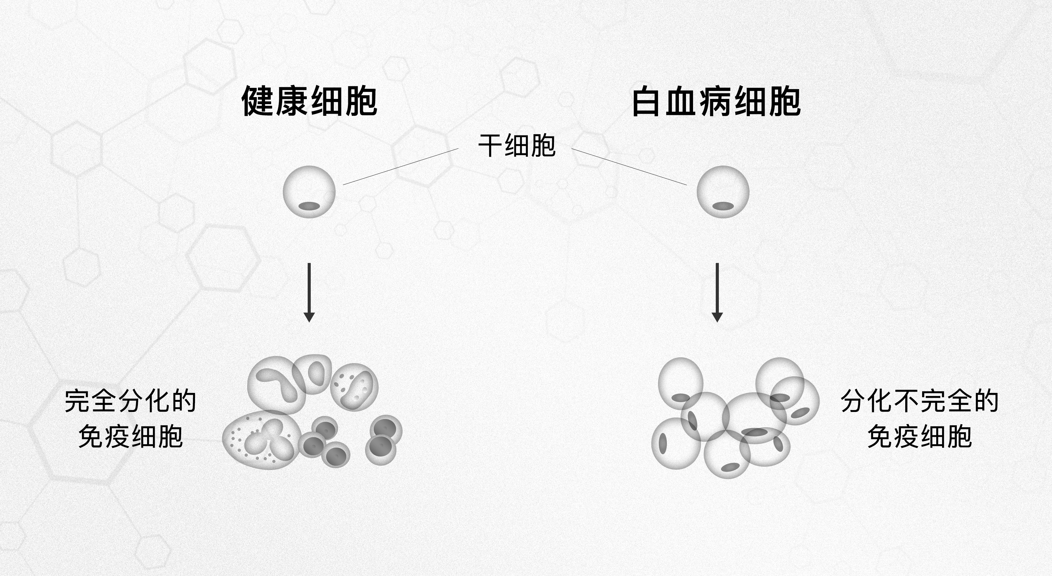白血病(Leukemia)又称为“血癌”,和其他的癌症一样,白血病也是由于病变的细胞过度增殖造成的。只不过这些病变的细胞是血液中的白细胞。根据白血病细胞的分化成熟程度和自然病程,将白血病分为急性和慢性两大类。而根据病变细胞的种类又可以分为髓系和淋巴系白血病。