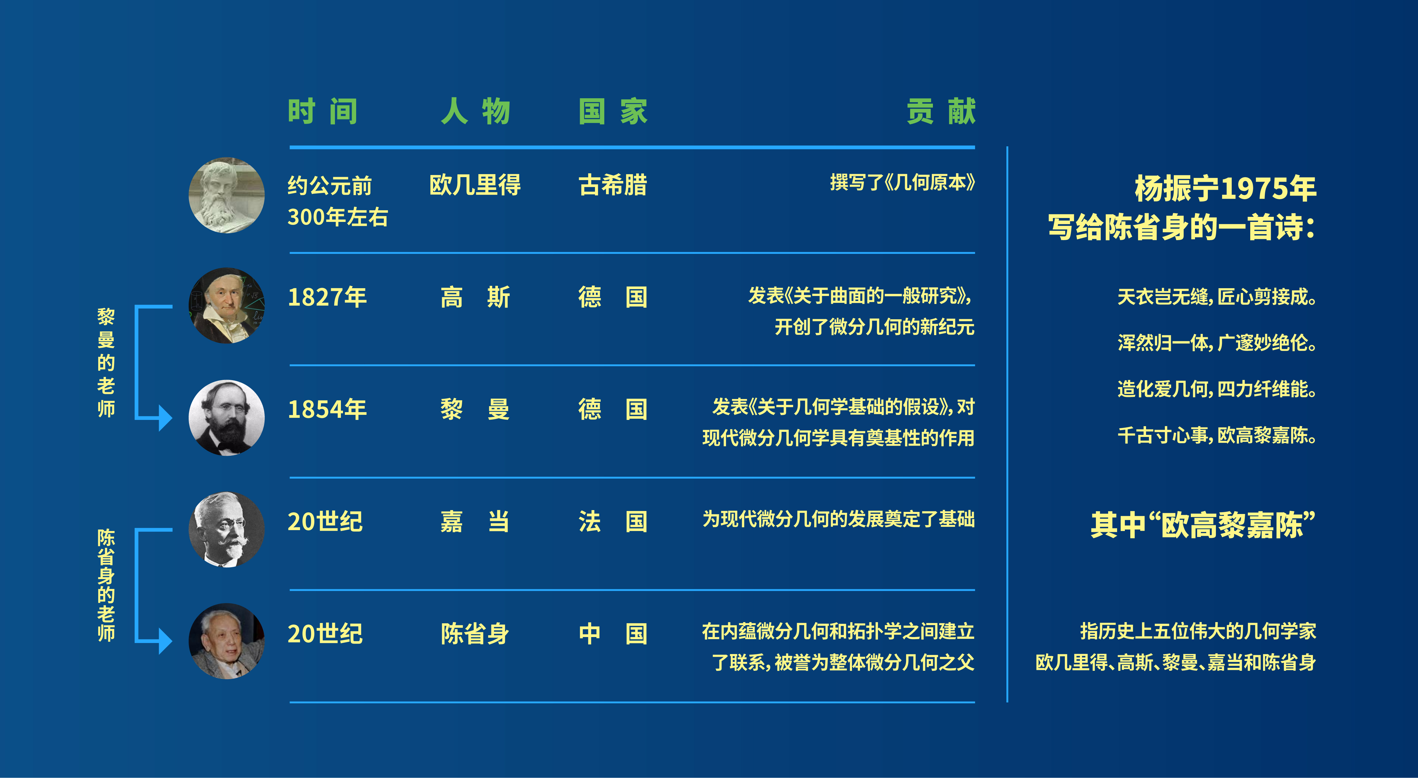 微分几何学自17世纪起源以来,便对很多学科的发展产生了巨大的推动作用,在我们的日常生活中更是处处可见。它是一种可用来研究空间几何的学科,大到宇宙膨胀,小到热胀冷缩,诸多自然现象都可以归结到空间演化。它的发展对于我们的生活影响巨大,人工智能、机器人和虚拟现实等现代技术,以及物理学中著名的广义相对论和量子场论等,都是因微分几何才得以被推进和发展。可以说,微分几何即使在今天也发挥着重要的作用,并将更加深远地影响我们的未来。