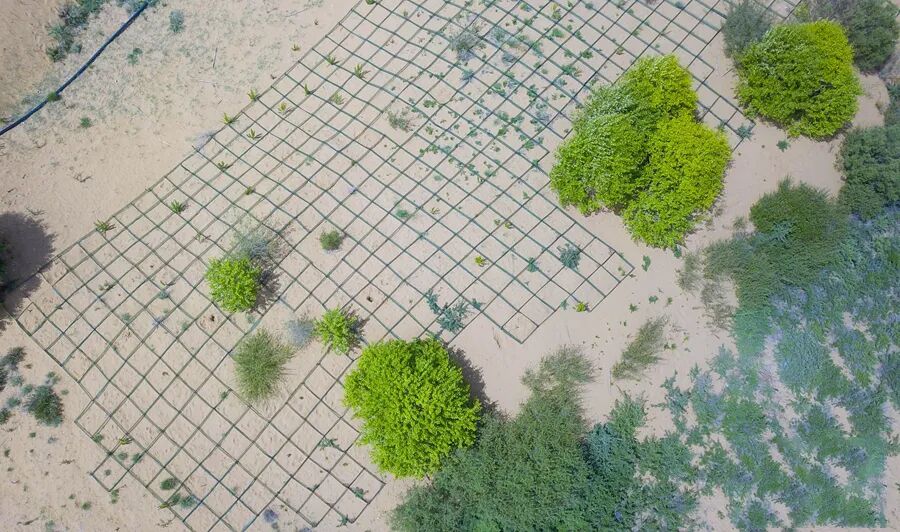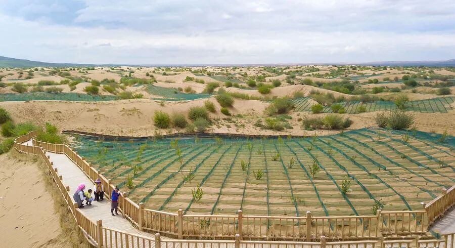 黄沙头内的“沙蒿治沙”试验田。图片来源:新华网