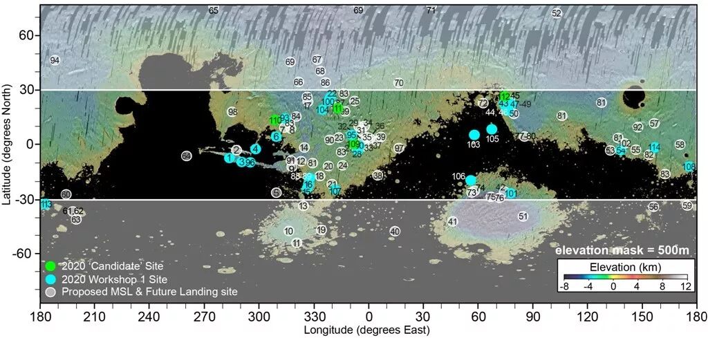 符合初筛条件的候选着陆点 | NASA Mars 2020第一次研讨会[5]