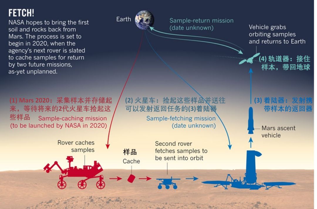 毅力号(Mars2020)采样返回的超时空接力,(2)(3)(4)任务可以一次完成,也可以分期完成,丰俭由人 |汉化自:Nature News [3]