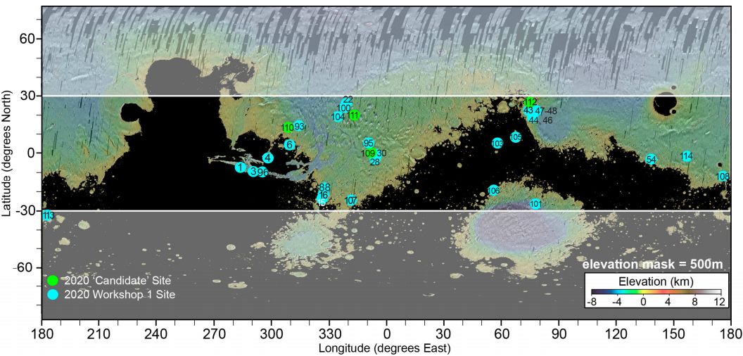 到2014年的第一次选址研讨会结束时,27个备选着陆区被选中。