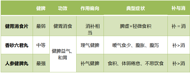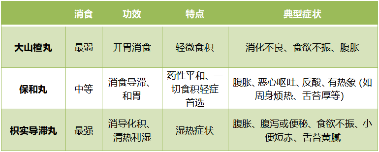 山楂善消肉食积滞,六神曲健脾和胃,善消酒食陈腐之积,还可以增强食欲,麦芽善消米面积滞。