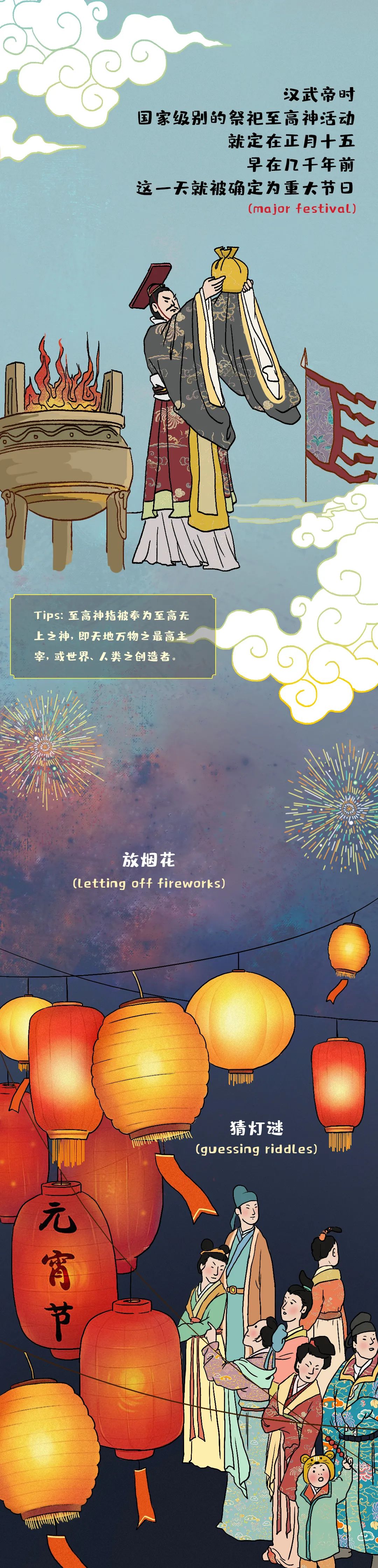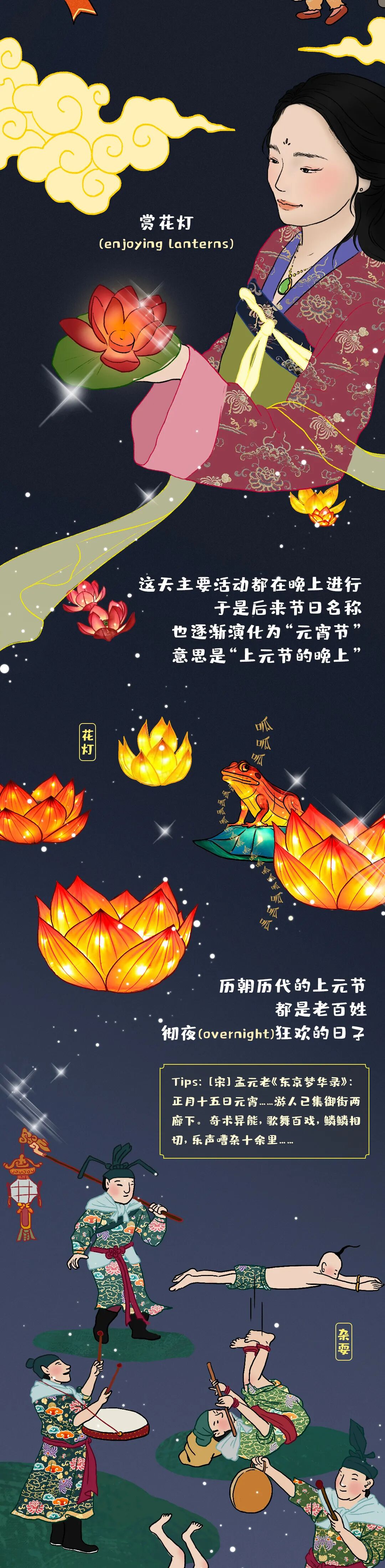猜灯谜(guessing riddles) 彻夜(overnight)