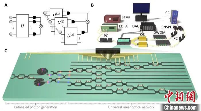 芯片原理、结构及实验装置示意图。国防科技大学供图