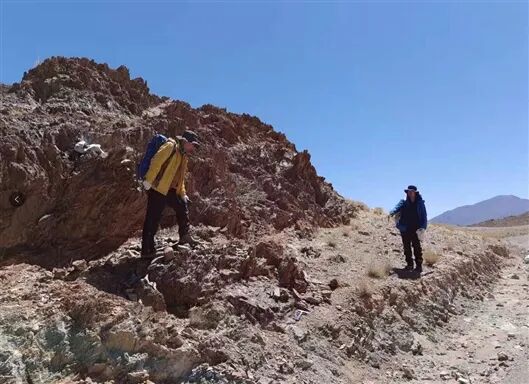 研究团队在班公湖畔观察玻安岩与蛇绿岩块野外接触关系 中科院青藏所供图