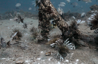 密密麻麻的狮子鱼,所有能吃的小鱼已经完全消失