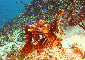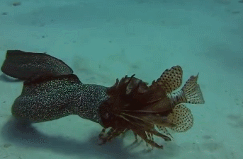 注:海鳗只是狮子鱼的天敌之一,还有以卵为食的鱼类,这里这是举例说明