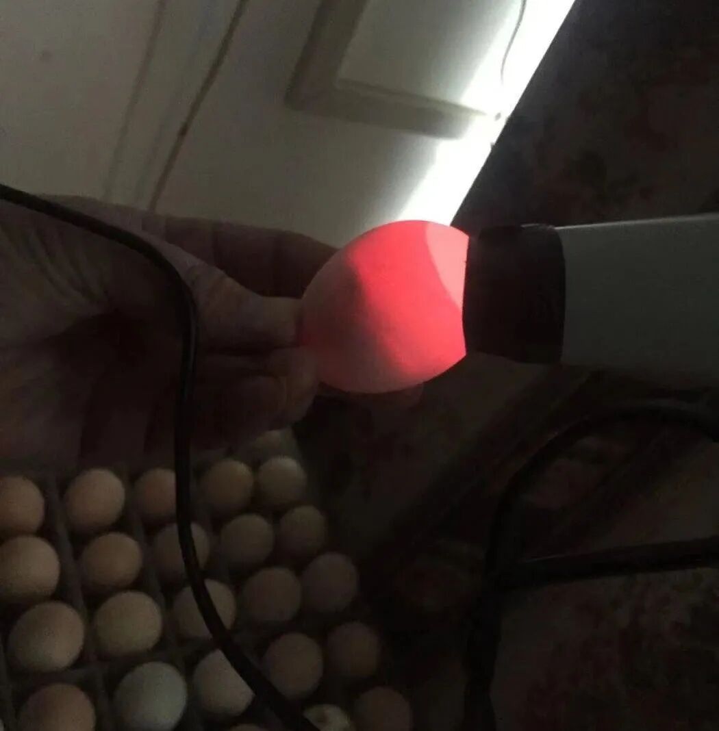 健康种鸡孵化至12天的胚胎蛋,拿灯光透照时,还可以见到胚胎律动和血管流动。