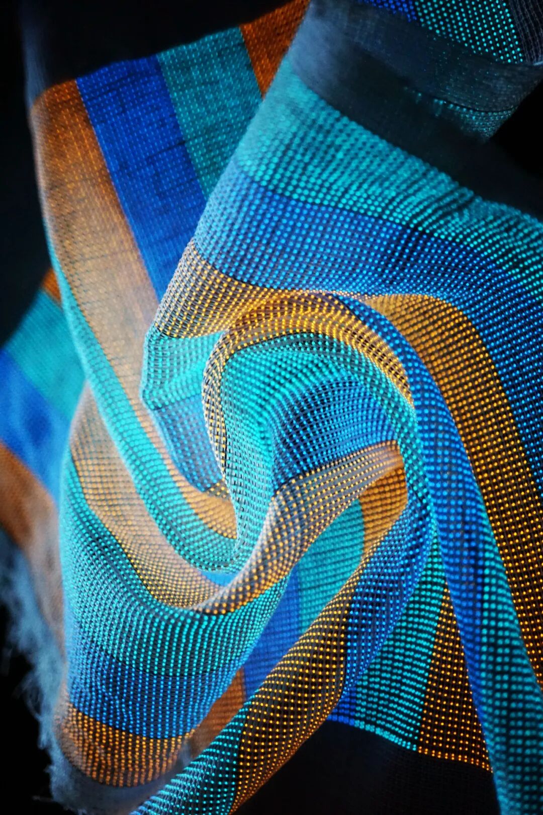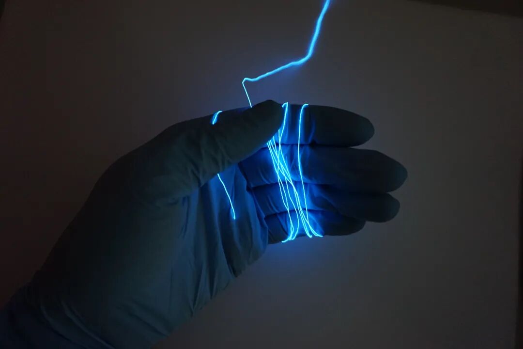 你有设想过“穿”在身上的显示器吗?融器件功能、纺织方法、织物形态于一体,在我们穿的衣服上浏览咨询、收发讯息、事件备忘……这是研究者近年来着力探寻的方向。 近日,复旦大学高分子科学系教授彭慧胜领衔的研究团队,成功将显示器件的制备与织物编织过程实现融合,在高分子复合纤维交织点集成多功能微型发光器件,揭示了纤维电极之间电场分布的独特规律,实现了大面积柔性显示织物和智能集成系统。 北京时间3月11日,相关研究成果以《大面积显示织物及其功能集成系统》为题在线发表于国际知名期刊《自然》主刊,审稿人评价其“创造了重要而有价值的新知识”。 是什么使织物拥有了显示特性?其内在结构如何?“显示织物内呈现独特的搭接结构,由发光经线和导电纬线交错而成。”彭慧胜解释道。从横截面方向看,其中一根为涂覆有发光材料的导电纱线,另一根透明导电纤维通过编织与其经纬搭接。“施加交流电压后,位于发光纤维上的高分子复合发光活性层在搭接点区域被电场激发,就形成一个个发光‘像素点’。”就这样,在电场的激发下,电极和发光层凭借物理搭接即可实现有效发光。 该方法可以将发光器件制备与织物编织过程相统一。据介绍,团队利用工业化编织设备,已经制成了长6米、宽0.25米、含约50万个发光点的发光织物,发光点之间最小的间距为0.8毫米,能初步满足部分实际应用的分辨率需求。 团队在导电纤维纬线的力学性能方面也下足了工夫,通过熔融挤出方法制备了一种高弹性的透明高分子导电纤维。彭慧胜介绍,在两根纤维发生相对滑移、旋转、弯曲的情况下,交织发光点亮度变动范围仍控制在5%以内,显示织物在对折、拉伸、按压循环变形条件下亦能保持亮度稳定,可耐受上百次的洗衣机洗涤。 除显示织物之外,研究团队还基于编织方法实现了光伏织物、储能织物、触摸传感织物与显示织物的功能集成系统,使融合能量转换与存储、传感与显示等多功能于一身的织物系统成为可能。极地科考、地质勘探等野外工作场景中,只需在衣物上轻点几下,即可实时显示位置信息,地图导航由“衣”指引;把显示器“穿”在身上,语言障碍人群以此作为高效便捷交流和表达的工具……这些原存于想象中的场景,或许在不远将来就能走进人们的生活。 ◎ 岑盼 科技日报记者 王春 来源:科技日报 文中图片、动图除标注以外均由作者提供 编辑:黄磊(实习) 审核:王小龙 终审:冷文生