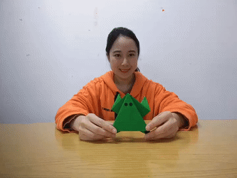 先准备好一只纸青蛙。孩子深吸一口气后,快速用力对着纸青蛙吹气,使纸青蛙向前跳动。(可使用纸团、纸杯、纸碗、小药盒和乒乓球等物品代替纸青蛙)