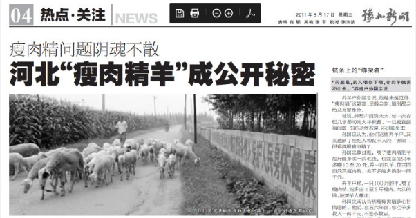 315曝光了河北青县的瘦肉精羊肉,有媒体找我约稿。我拒绝了。写些啥呢?瘦肉精的科普我早就写过了。瘦肉精羊肉也不是第一天,当年吃“健美猪”的孩子都有孩子了吧。