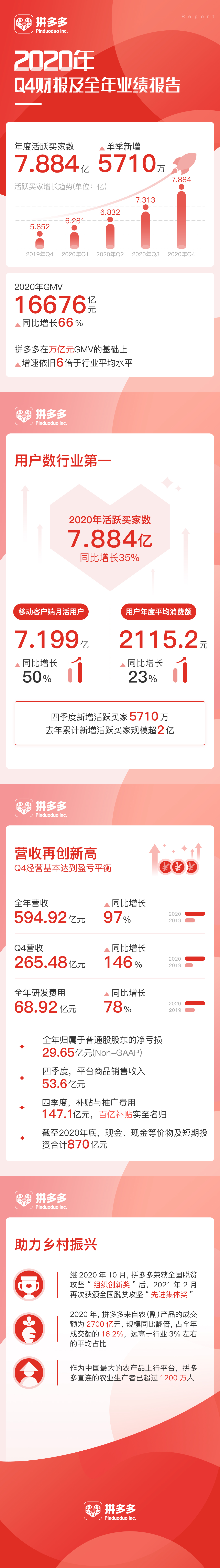 北京时间3月17日,拼多多发布2020年第四季度及全年财报: