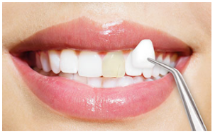 这个相对容易理解,就是在牙齿表面贴上一层近似于正常牙齿牙色的材料来实现美白的效果。