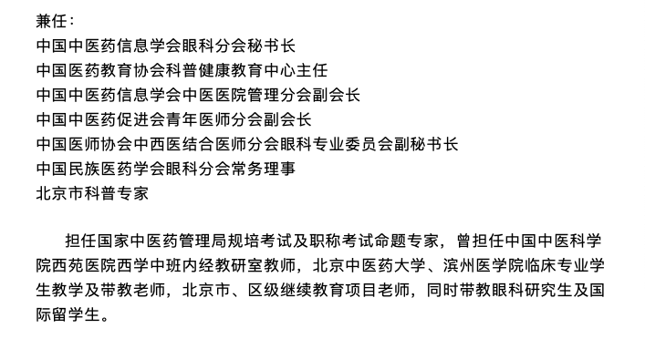 北京中医药大学第三附属医院眼科专家推荐: