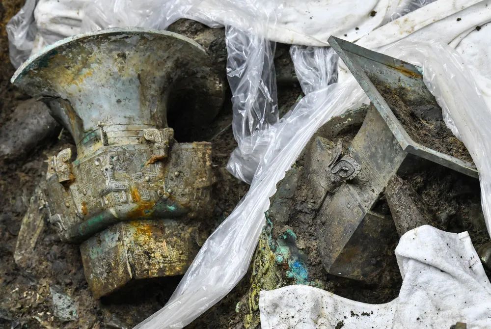 考古人员在3号祭祀坑中