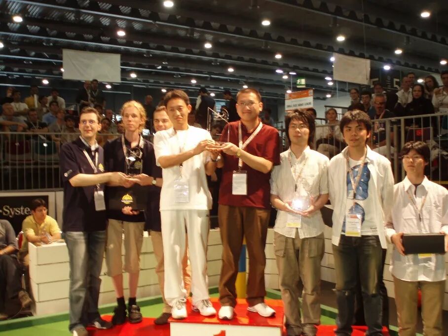这张照片中间就是我们当时的两位核心队员,左边是第二名德国队,右边是第三名日本队。