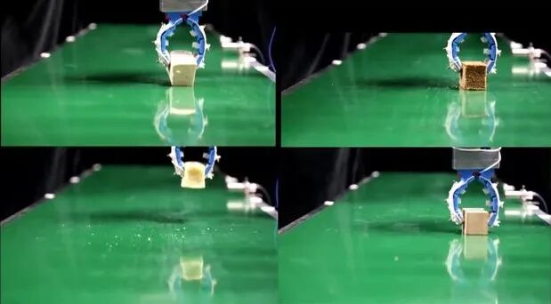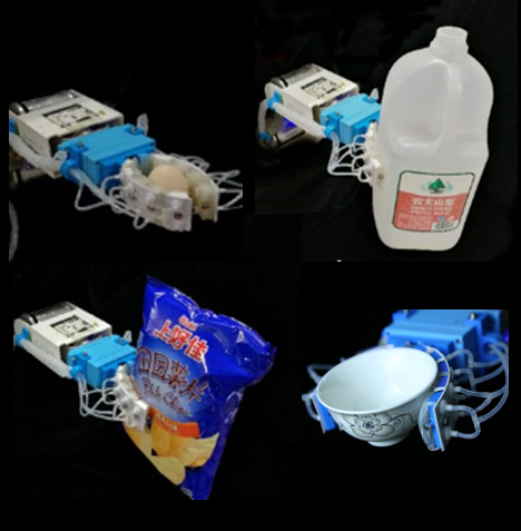 我们发现,有的机器人刚才那些事情都能做得很好,但是它的手不行,抓东西比人要差很远。于是我们用融差性原理做了一个手爪,可以抓鸡蛋,抓比较大的东西,抓碗,抓软的东西,比如豆腐。