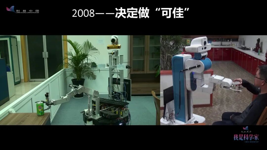 为什么呢?因为围棋和机器人足球中的选择范围是固定的,就那么多,但在家庭环境里,我们不知道会发生什么情况。所以,2008年决定做可佳机器人,也是非常有挑战性的。我们就以机器人足球的技术作为基础,进一步往前走。