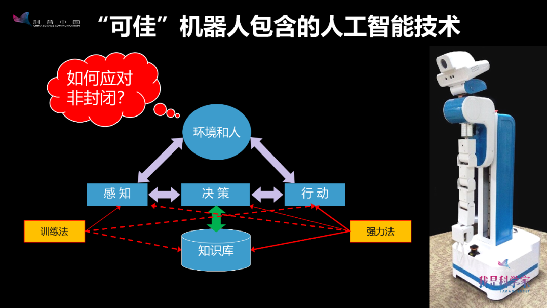 我们用的技术有很多,有强力法,有训练法,跟阿尔法狗一样;但对可佳机器人来说,这还不够,因为会碰到家庭环境非封闭的问题。