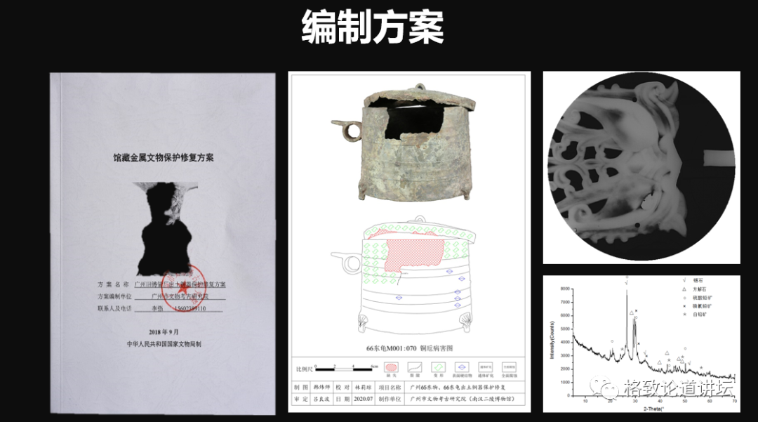 第一步,编制文物保护修复方案,内容包括文物基本信息、价值评估、有什么病害,包括残缺、裂隙、变形、修复痕迹等。