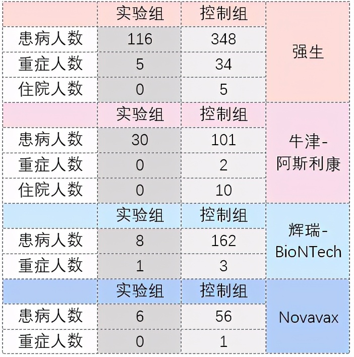 表1. 四种疫苗的试验结果人数对比。[2-5]