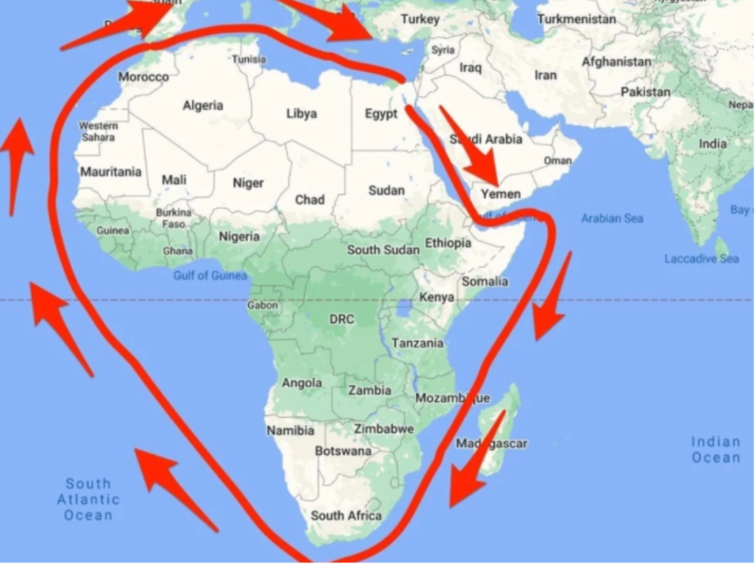 通常情况下,货船以12节的速度从苏伊士运河前往荷兰阿姆斯特丹约需12天,而绕道南非好望角则需41天,航程增加约1万公里,且额外花费7百万兰特(约合300万人民币)。