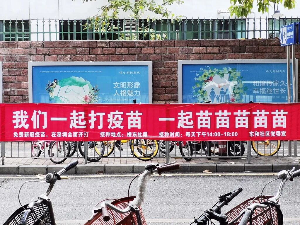 3月30日,广东深圳盐田区东和社区桥东社康打出最洗脑的打疫苗标语,“我们一起打疫苗 一起苗苗苗苗苗”,该标语走红网络。