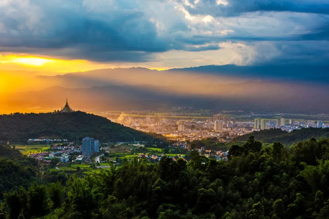 芒市的主要居民是傣族、景颇族,你可以在这里礼佛、过特色节日、品独特美味。因与缅甸毗邻,所以在这里你可以感受到东南亚风格与民族风的碰撞,街道这一旁是棕榈树,而另一旁的树上则挂满了菠萝蜜。