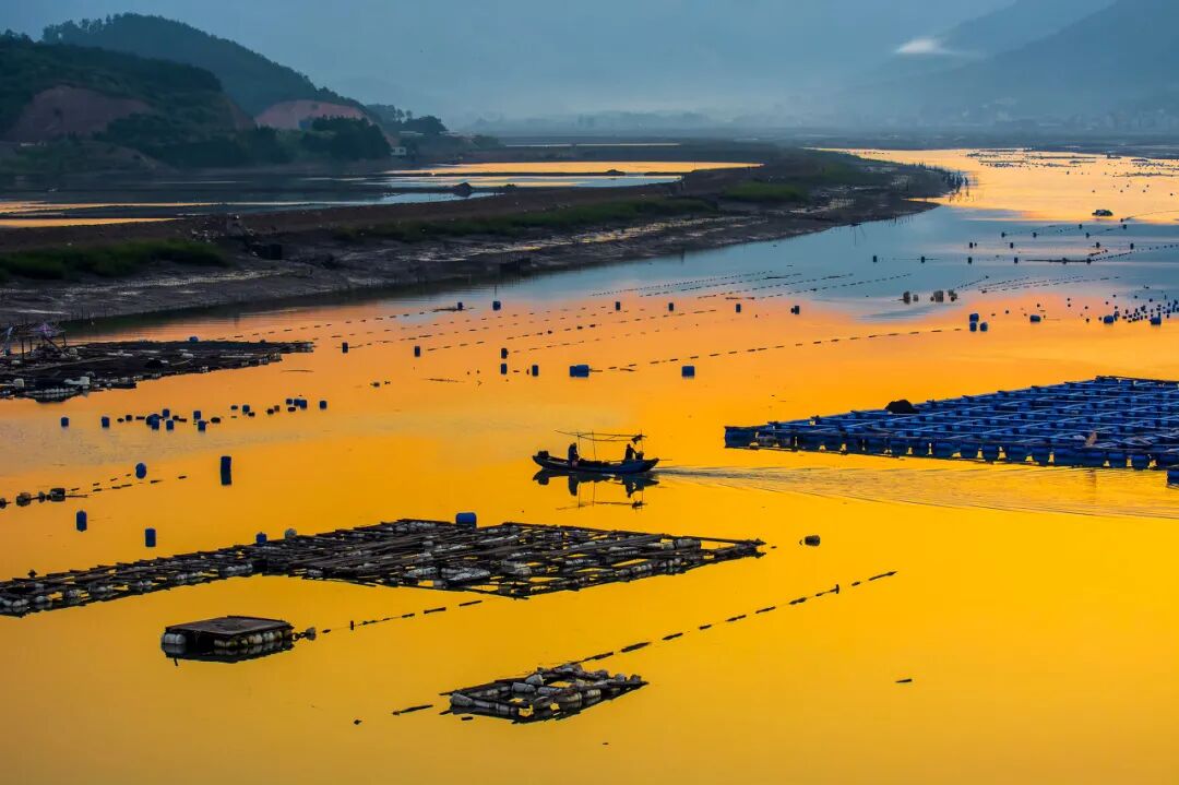 下青山被誉为“漂浮在海面上的村庄”和“中国水上的威尼斯”,海面之上是栉比鳞次的房屋。霞浦的海域根据地貌深浅等因素养殖着不同的海产品,如海带、紫菜、牡蛎、鱼类、虾蟹等,下青山村是海参鲍鱼养殖场。日落时分,漫天霞光,整个海面金光万道,仿佛置身世界尽头。